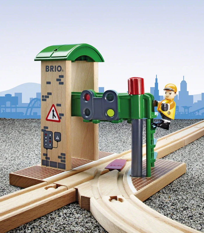 BRIO Signalstasjon er et brillefint tilbehør til togbanen din. Her kan du veksle over på et nytt spor. Bestem hvilken vei forbipasserende tog skal ta med hjelp av den røde knappen, og se togene suse av sted mot nye destinasjoner.